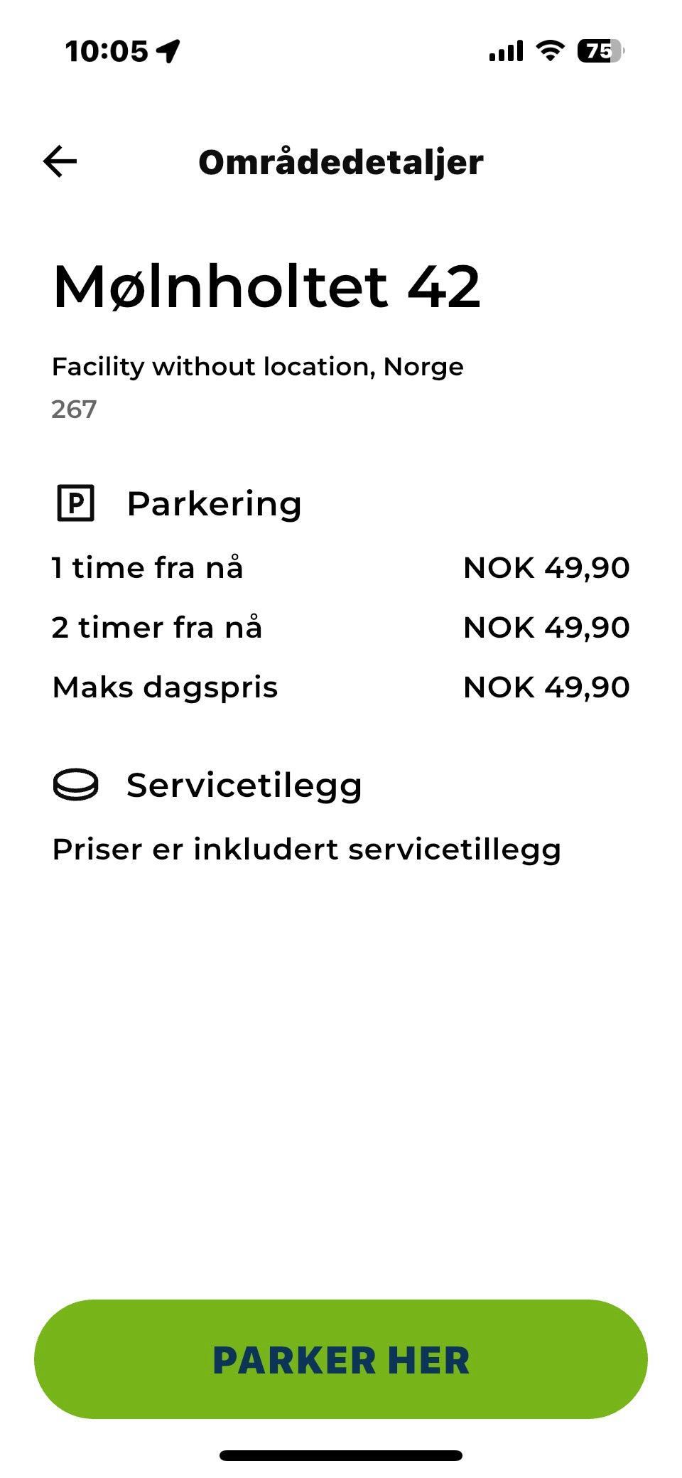 - Studenter betaler ikke noe når de har studentbevis synlig i bilen, dette skaffes ved administrasjonskontoret